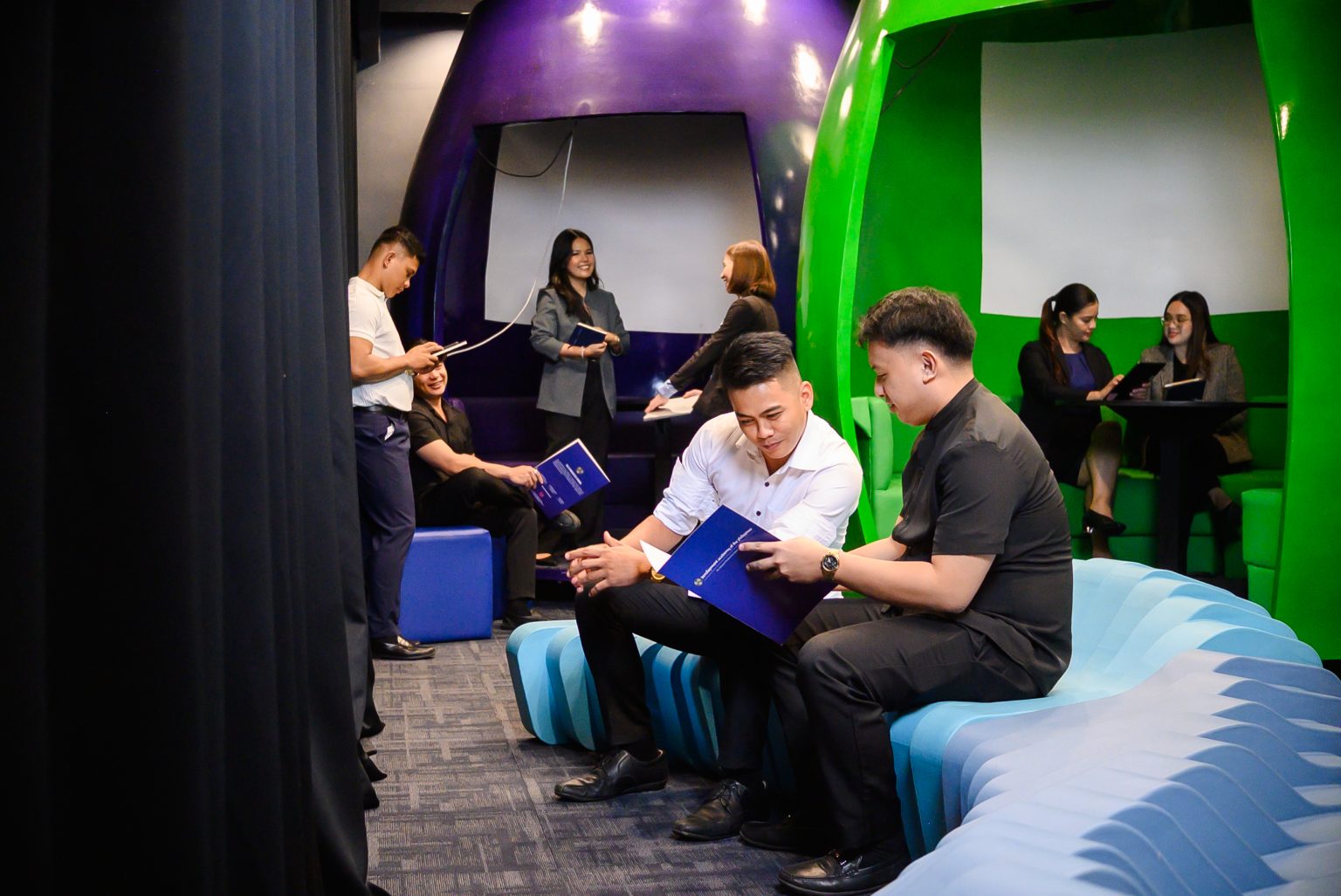 The Future Center and Innovation Laboratory pilot facility is a learning space designed to encourage participants to generate innovative ideas. It features four sets of pods, each equipped with an individual projector and capable of accommodating four to five people. The facility also includes a plenary hall with bleacher seating and an interactive projector, suitable for groups of 10 to 15 participants.