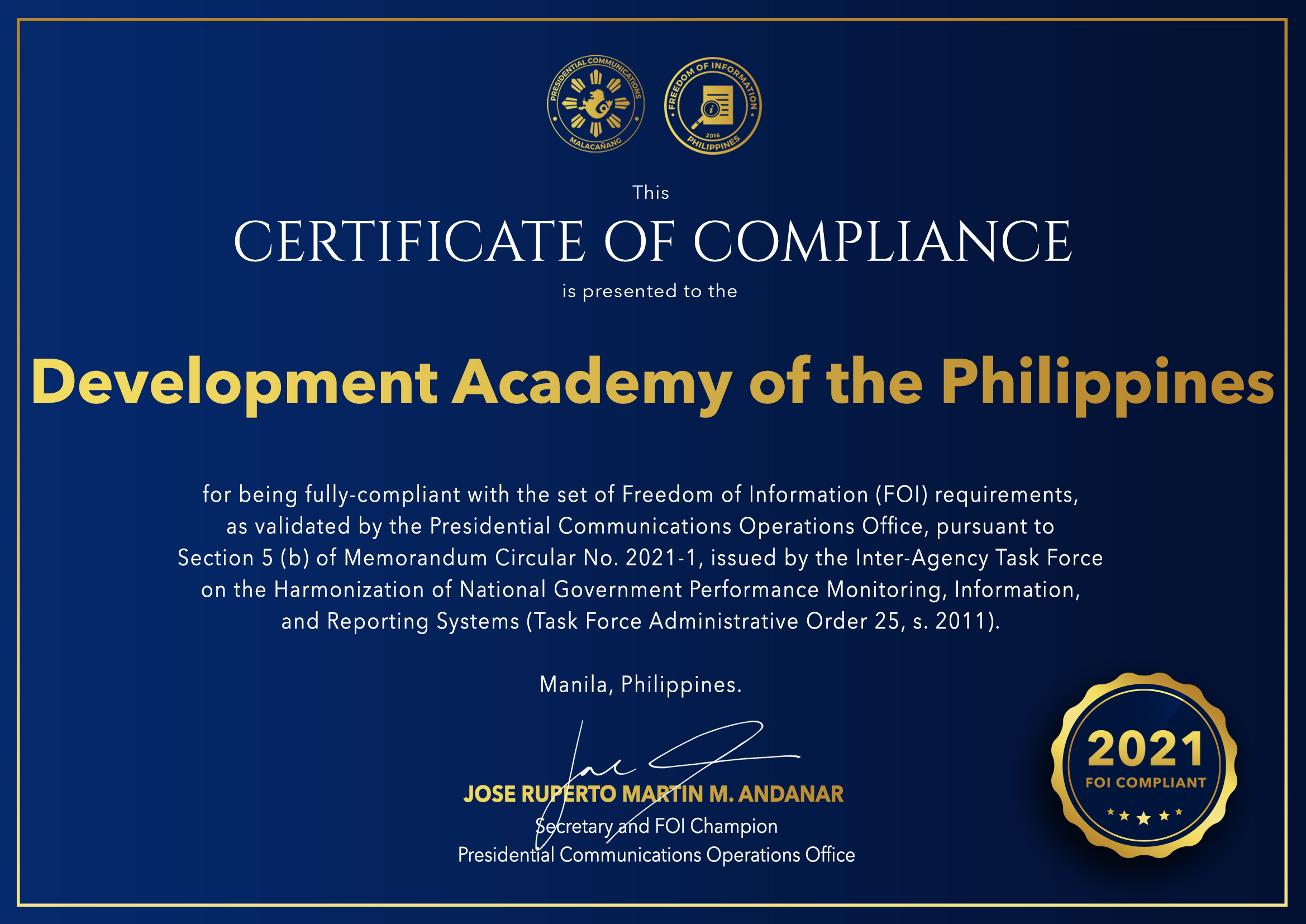 Performance Agreement GCG and DAP